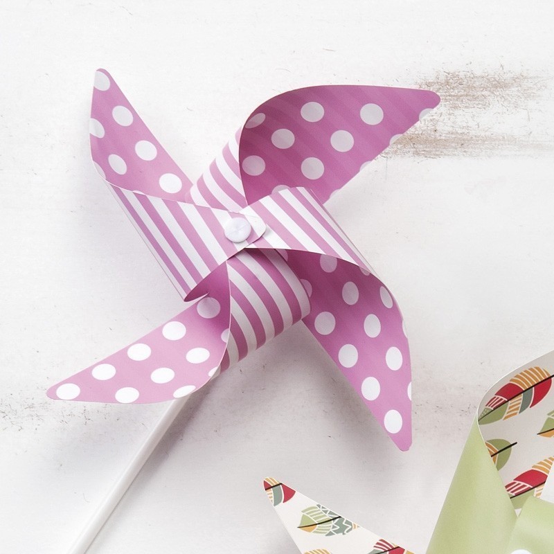 Χάρτινος διακοσμητικός ανεμόμυλος με πλαστικό stick. Print διπλής όψεως σε αποχρώσεις ροζ πουά. Ελάχιστη παραγγελία 25 τεμάχια.