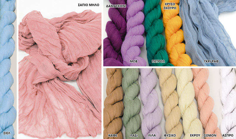 Βαμβακερή γάζα τσαλακωτή, σε ποικιλία χρωμάτων. Διαστάσεις: 90cm x 3m