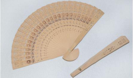 Ξύλινη βεντάλια σε χρώμα φυσικό άβαφο. Διαστάσεις: 20cm ύψος, 34cm ανοιχτή.