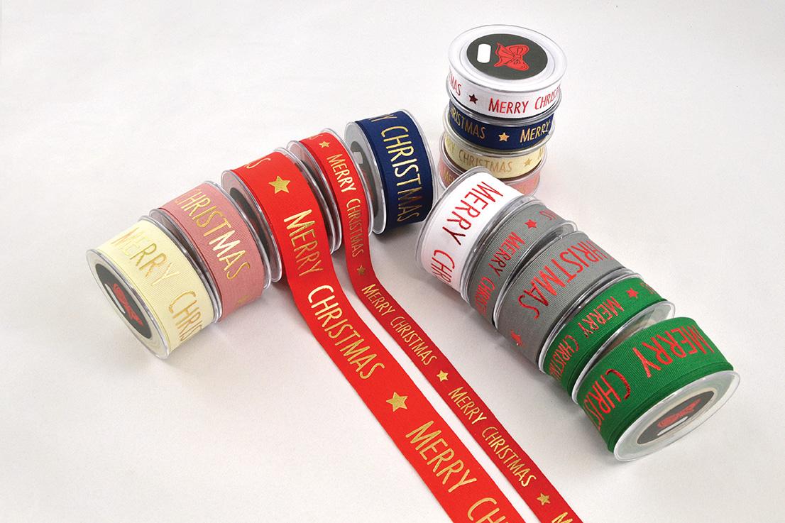 Κορδέλα Γκρο ματ Merry christmas για την κατασκευή γουριών, ή το στολισμό ενός δώρου κατά τη διάρκεια των γιορτών.