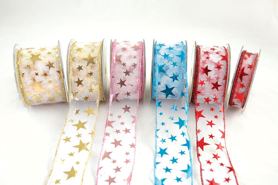 Κορδέλα τούλι με μεταλλικά αστέρια