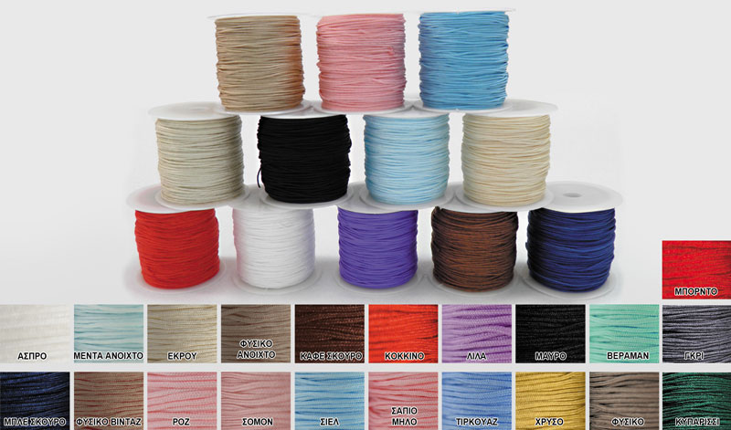 Κορδόνι πολυεστερικό για την κατασκευή κοσμημάτων και όχι μόνο. Διαθέσιμο σε ποικιλία χρωμάτων. Διαστάσεις: 1mm 50m