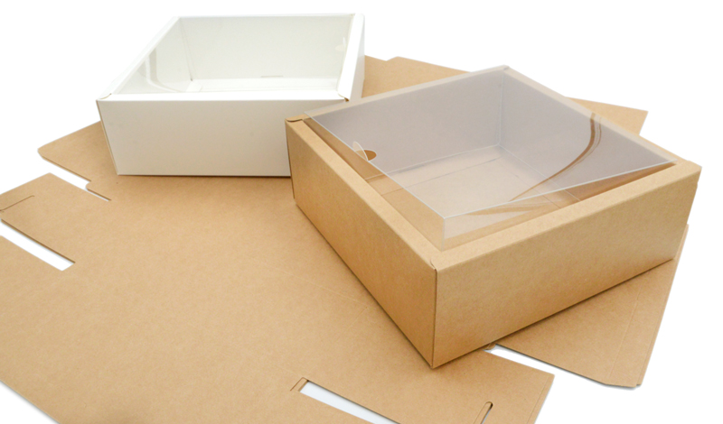 Κουτί χάρτινο με καπάκι ζελατίνα. Διαστάσεις: 25cm x 25cm x 7.2cm. 350G