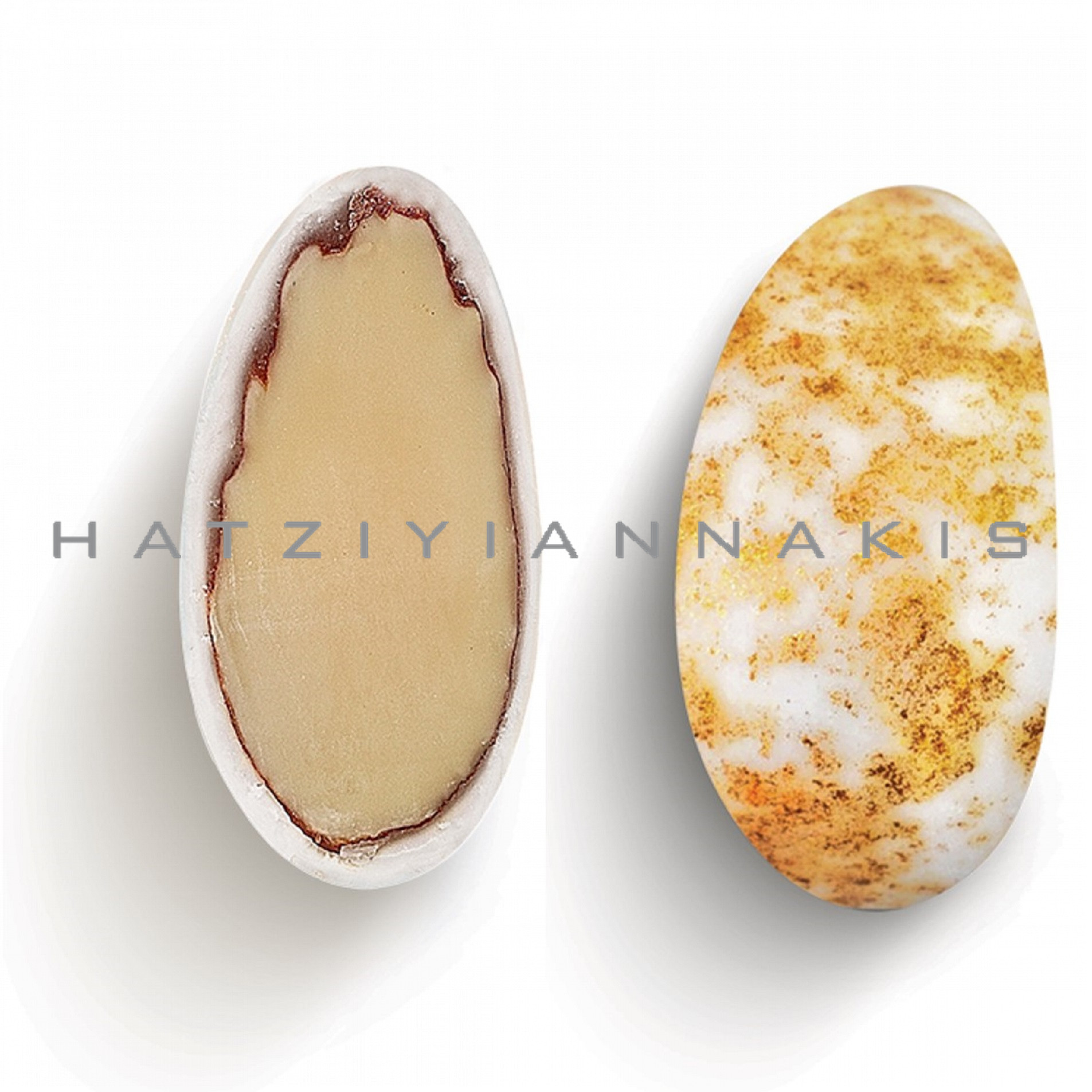 Ολόκληρο καβουρδισμένο αμύγδαλο και λεπτή επικάλυψη ζάχαρης με γεύση καραμέλα.