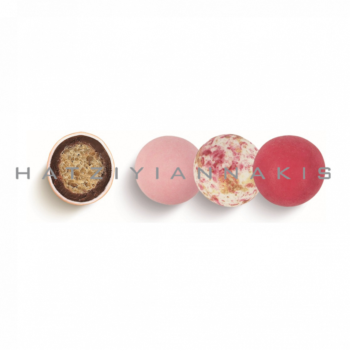 Κουφέτο crispy σειρά twist γεύση τύπου bueno πολύχρωμο princess (ροζ ανοιχτο ματ, rasberry ματ, πιτσιλωτό ροζ χρυσό μεταλλιζέ)