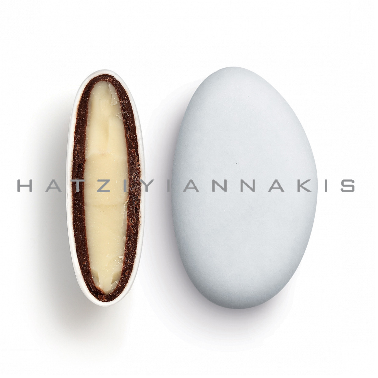 Λευκή σοκολάτα & σοκολάτα (55% κακάο) με λεπτή επικάλυψη ζάχαρης, γεύση μπανάνα. 180-200 τεμάχια/κιλό περίπου.
