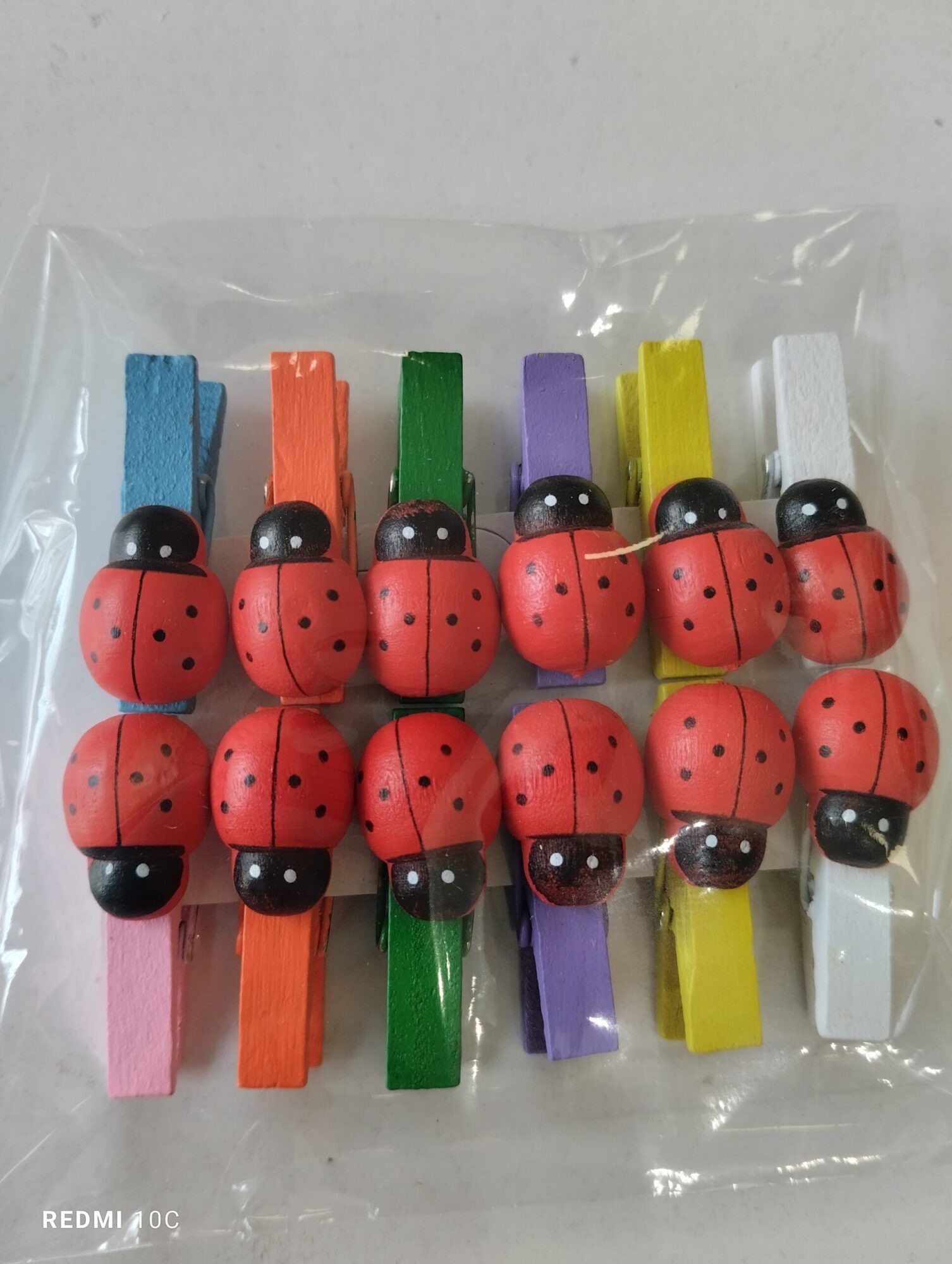 Μανταλάκι ξύλινο σε διάφορα χρώματα με πασχαλίτσα, 12τμχ. Ιδανικό για την πασχαλινή διακόσμηση του σπιτιού μας, για να κλείσουμε μια τσάντα με ιδιαίτερο τρόπο, να στολίσουμε μια λαμπάδα. Μπορεί να χρησιμοποιηθεί κάλλιστα σε κάθε εποχή.
