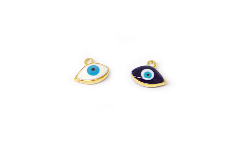 Μεταλλικό μάτι δύο όψεων σμάλτο, με τρύπα. Ιδανικό στοιχείο για καταστευή κορσμημάτων και χειροτεχνιών γενικότερα. Διαστάσεις: 1.4cm x 1.1cm