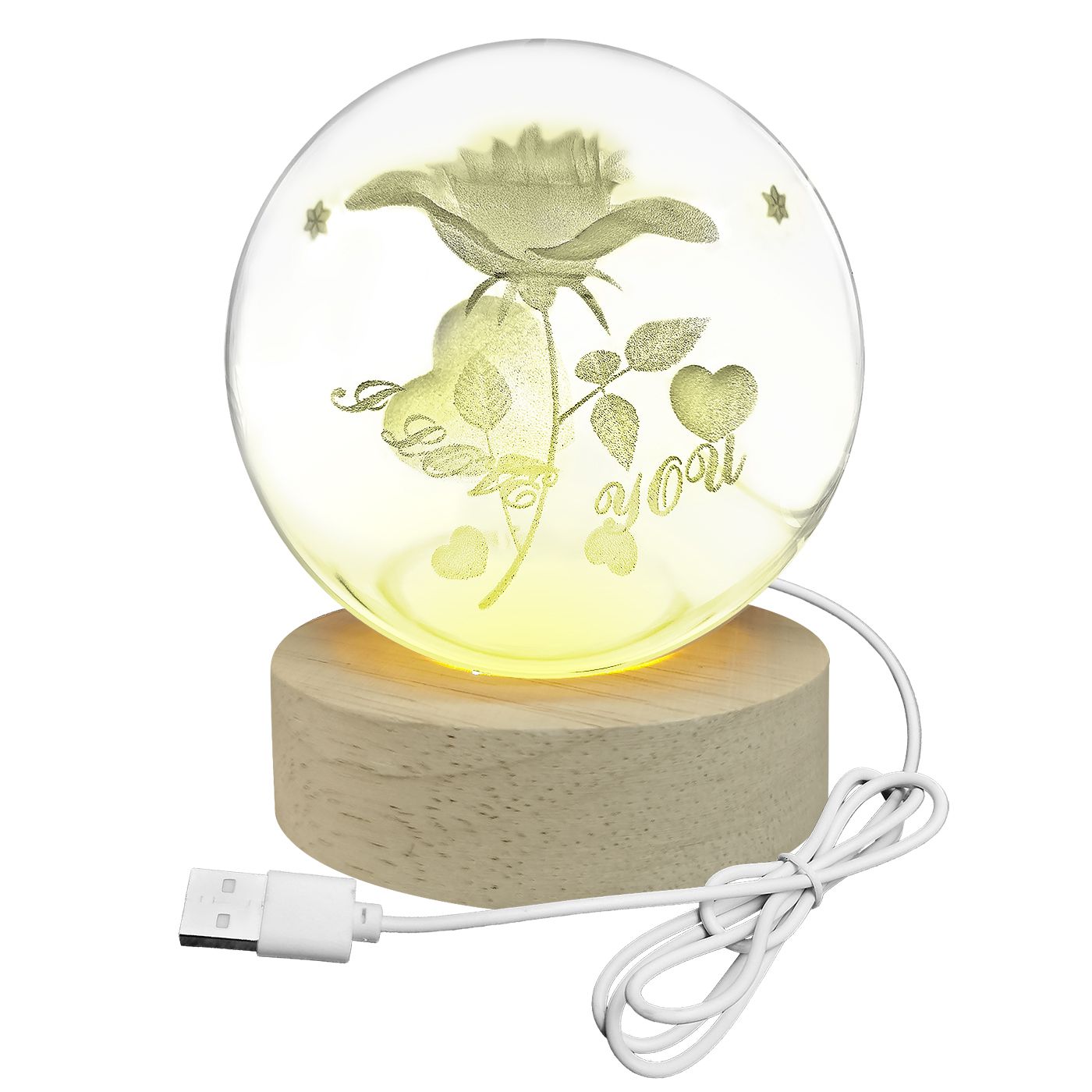 Μπάλα γυάλινη I Love you με βάση 6 Led ø8cm