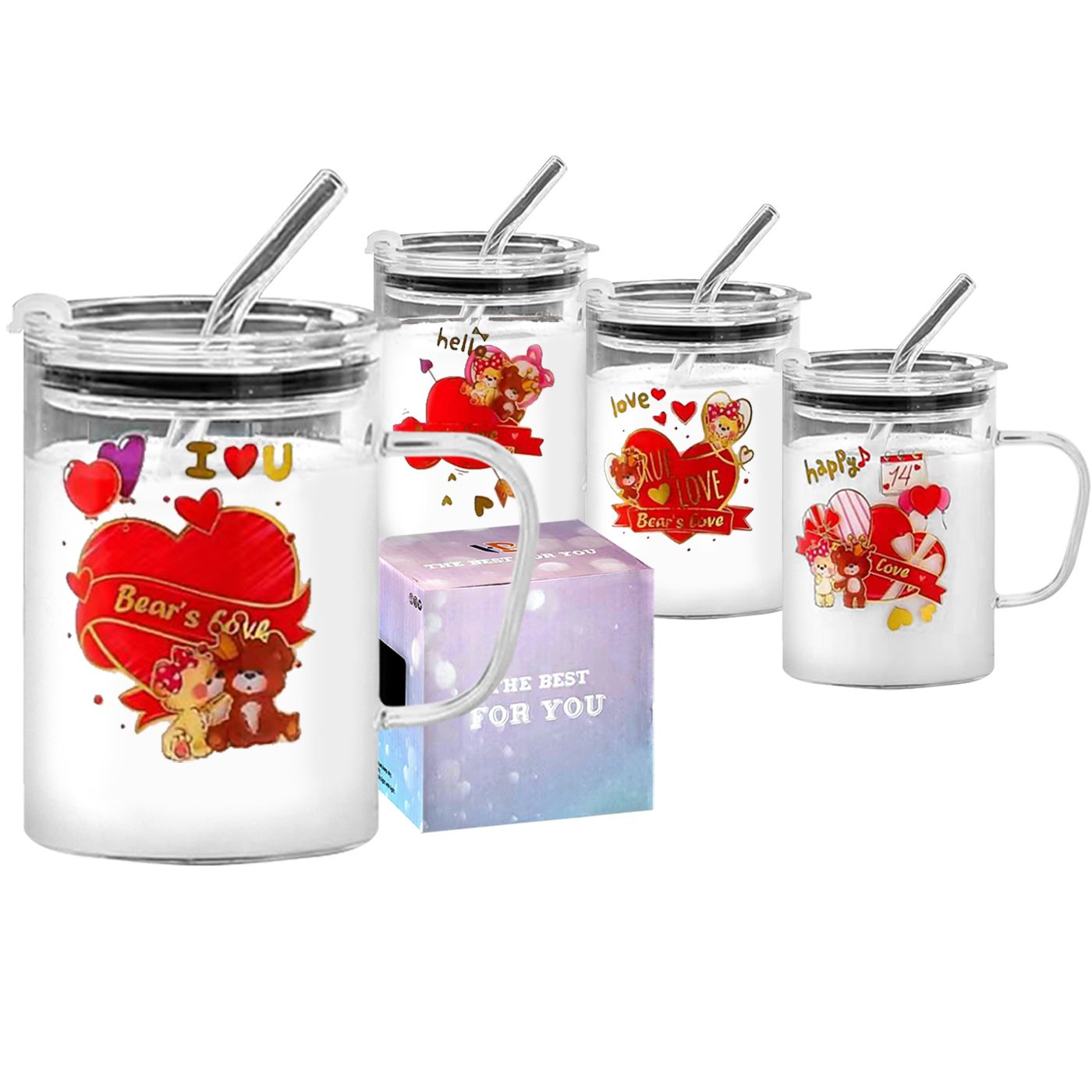 Σετ Κούπα Γυάλινη, Καλαμάκι, Καπάκι Βαλεντίνου 400 ml 400ml