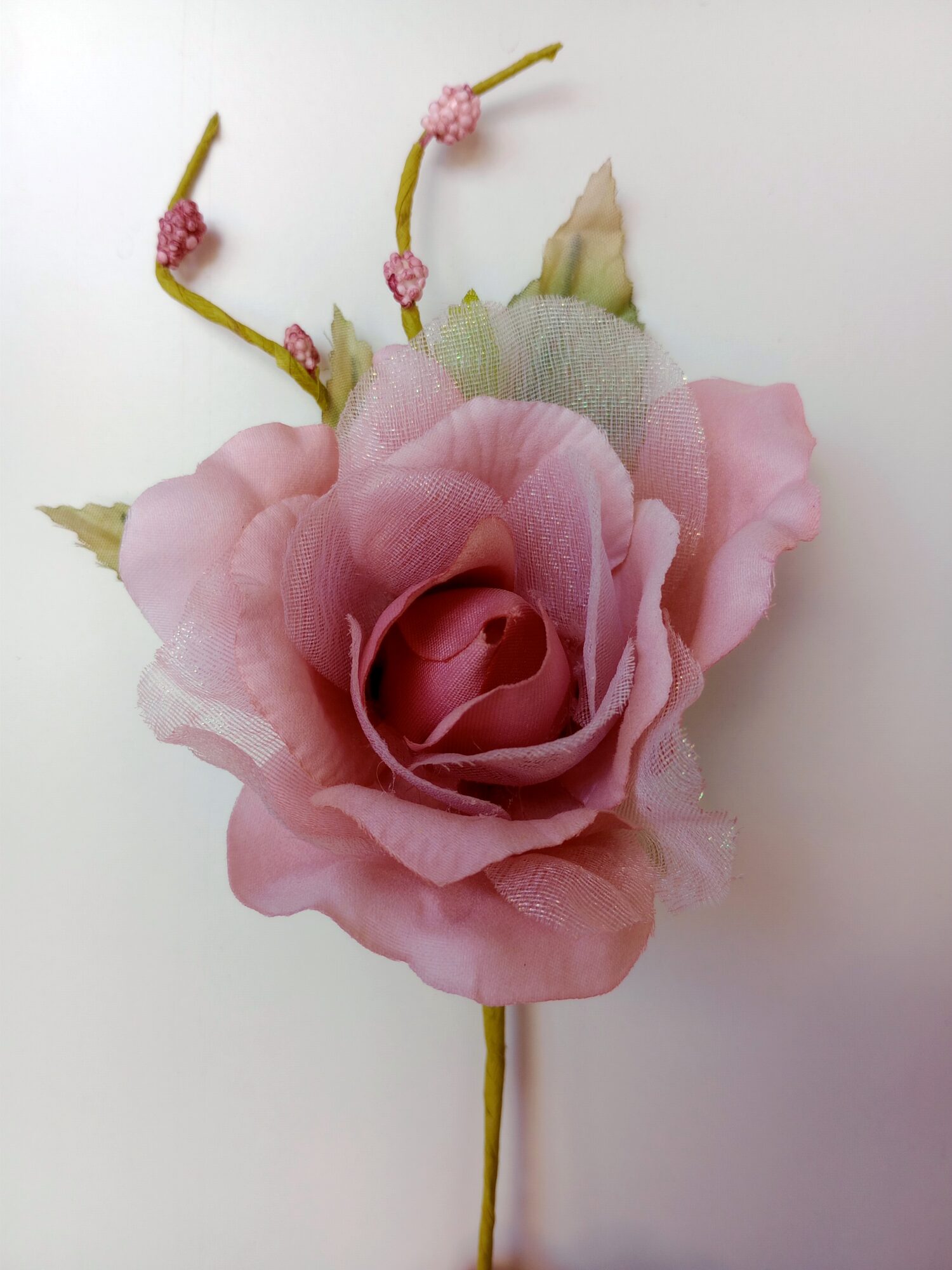 Τριαντάφυλλο υφασμάτινο σε σάπιο μήλο με φύλλα, 22cm. Ένα υπέροχο άνθος που μπορεί κάλλιστα να πλαισιώσει τη γαμίλια διακόσμηση του σπιτιού σας ή της εκκλησίας.