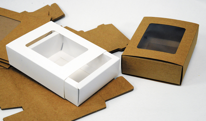 Χάρτινο κουτί συρταρωτό με παράθυρο. Διαθέσιμο σε λευκό και φυσικό. Ελάχιστη παραγγελία 12τμχ. Διαστάσεις: 17cm x 13cm x Υ5cm. Kαθαρή διάσταση εσωτερικά: 15cm x 11cm
