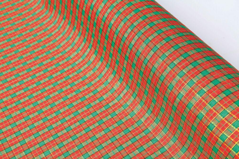 Ύφασμα καρρώ κόκκινο πράσινο, skotch με χρυσοκλωστή.