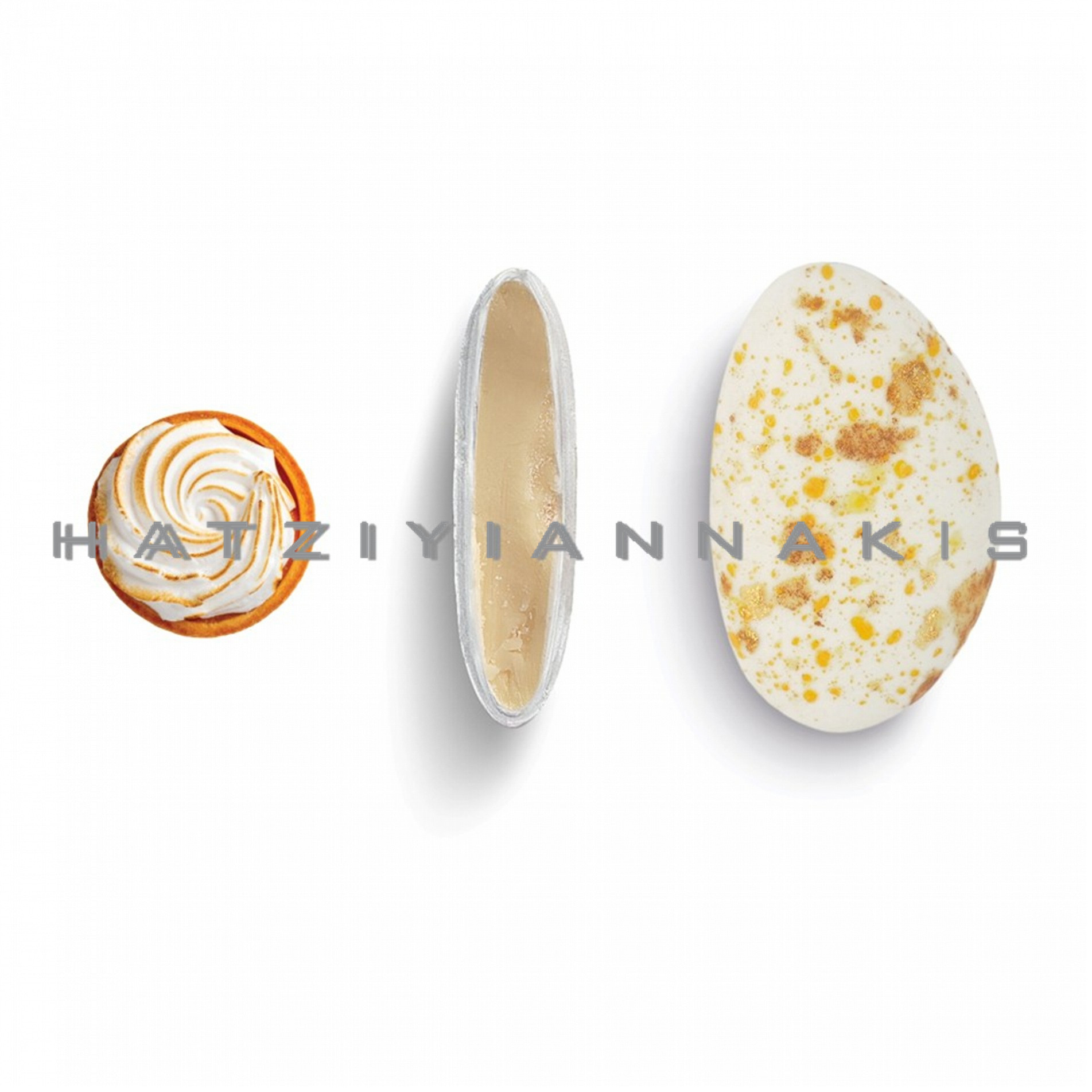 Λευκή σοκολάτα με λεπτή επικάλυψη ζάχαρης, γεύση lemon pie. Περίπου 300-320 τεμάχια ανά κιλό.
