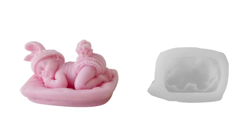 Kαλούπι σιλικόνης μωράκι. Διάσταση κεριού: 7.5cm x 4cm ύψος. 70g