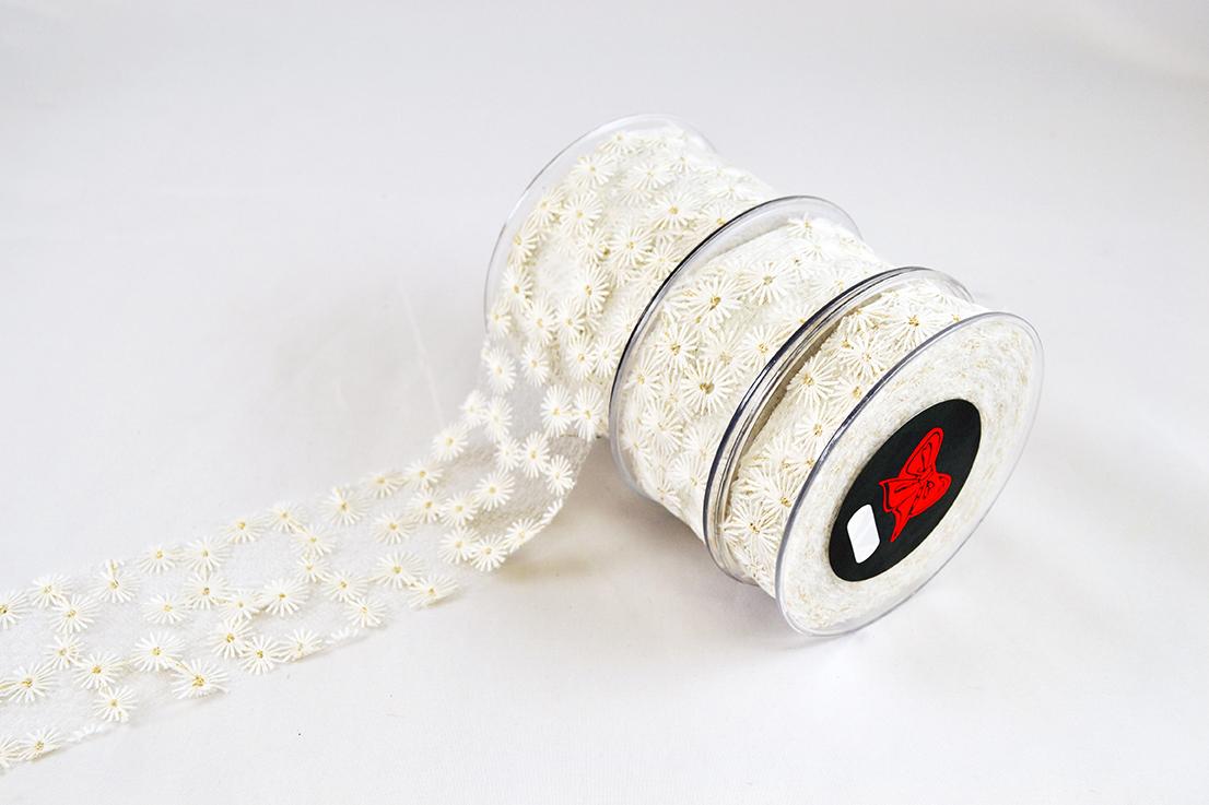 Koρδέλα Dafne με δαντέλα και κεντημένες μαργαρίτες χωρίς τελείωμα. Για κατασκευές, για στολισμούς, για γάμους και βαφτήσεις.