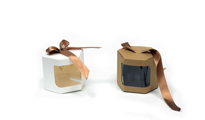 Kουτί πολύγωνο με παράθυρο και κορδέλα.